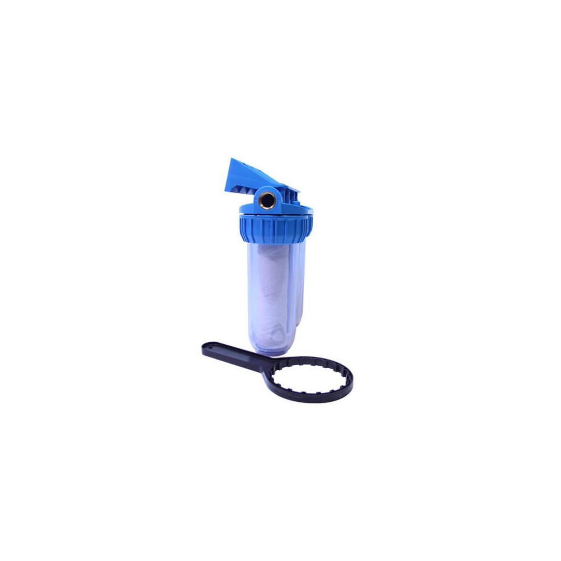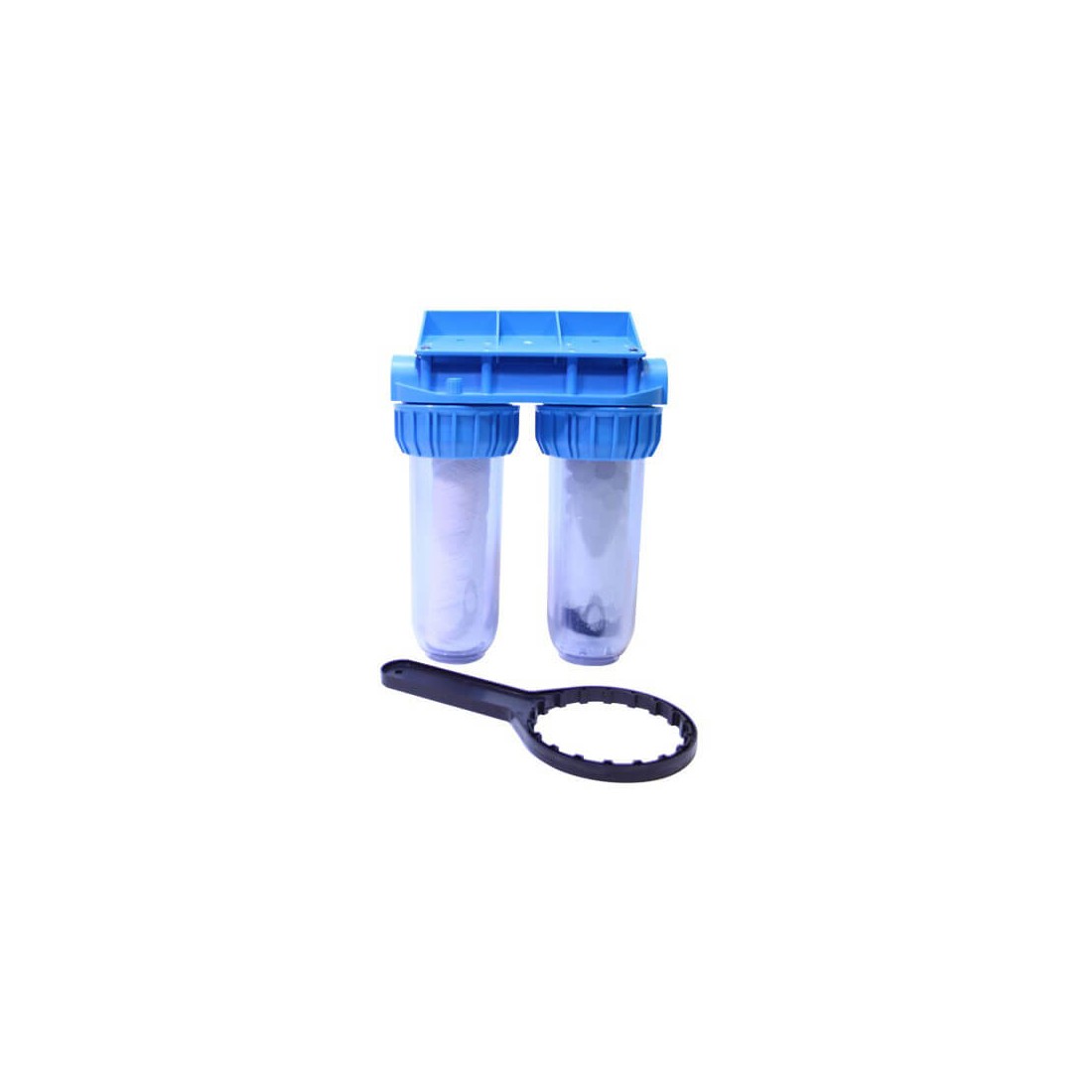 Accesssoire PompeCarter porte filtre duo avec entrée et sortie en 3/4'' et sa clé de démontage.