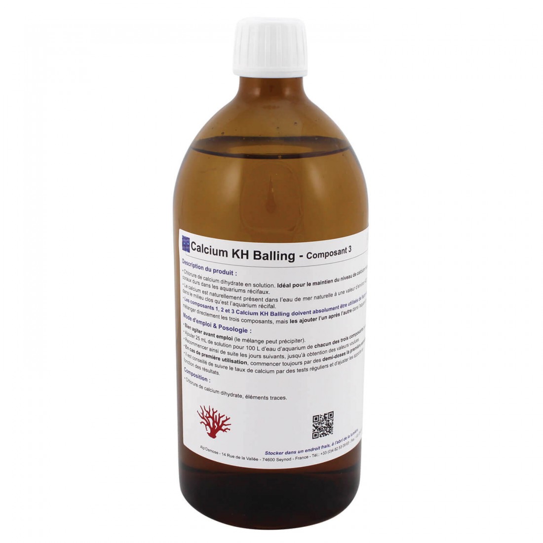 Plus d'info...• Chlorure de calcium dihydrate en solution. Idéal pour le maintien du niveau de calcium nécessaire à une bonne croissance des coraux durs dans les aquariums récifaux.